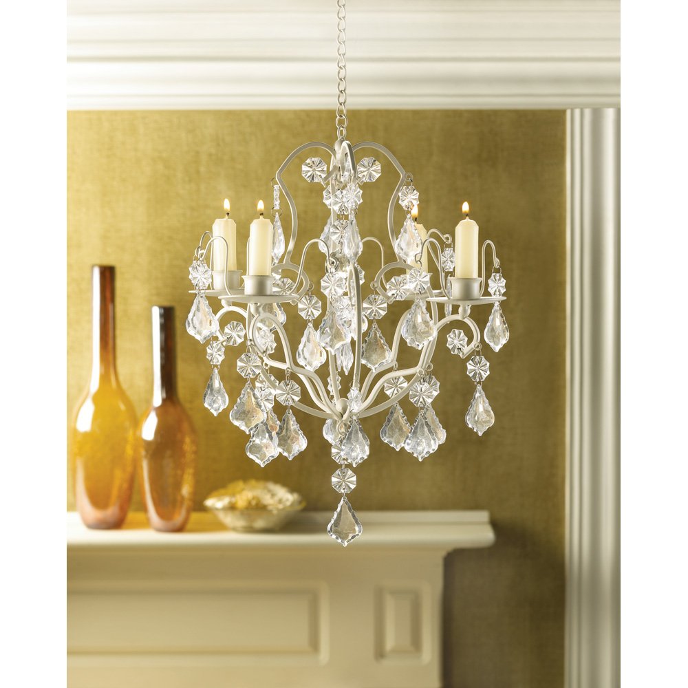 This one of a kind chandelier is the perfect accent for any living room, dining room, or patio. Complete with the candle or LED light of your choice to create a customizable flickering ambience that will enhance any space. An ideal gift or finishing touch to your own personal home décor, this decorative and durable chandelier will be shedding light for years to come.