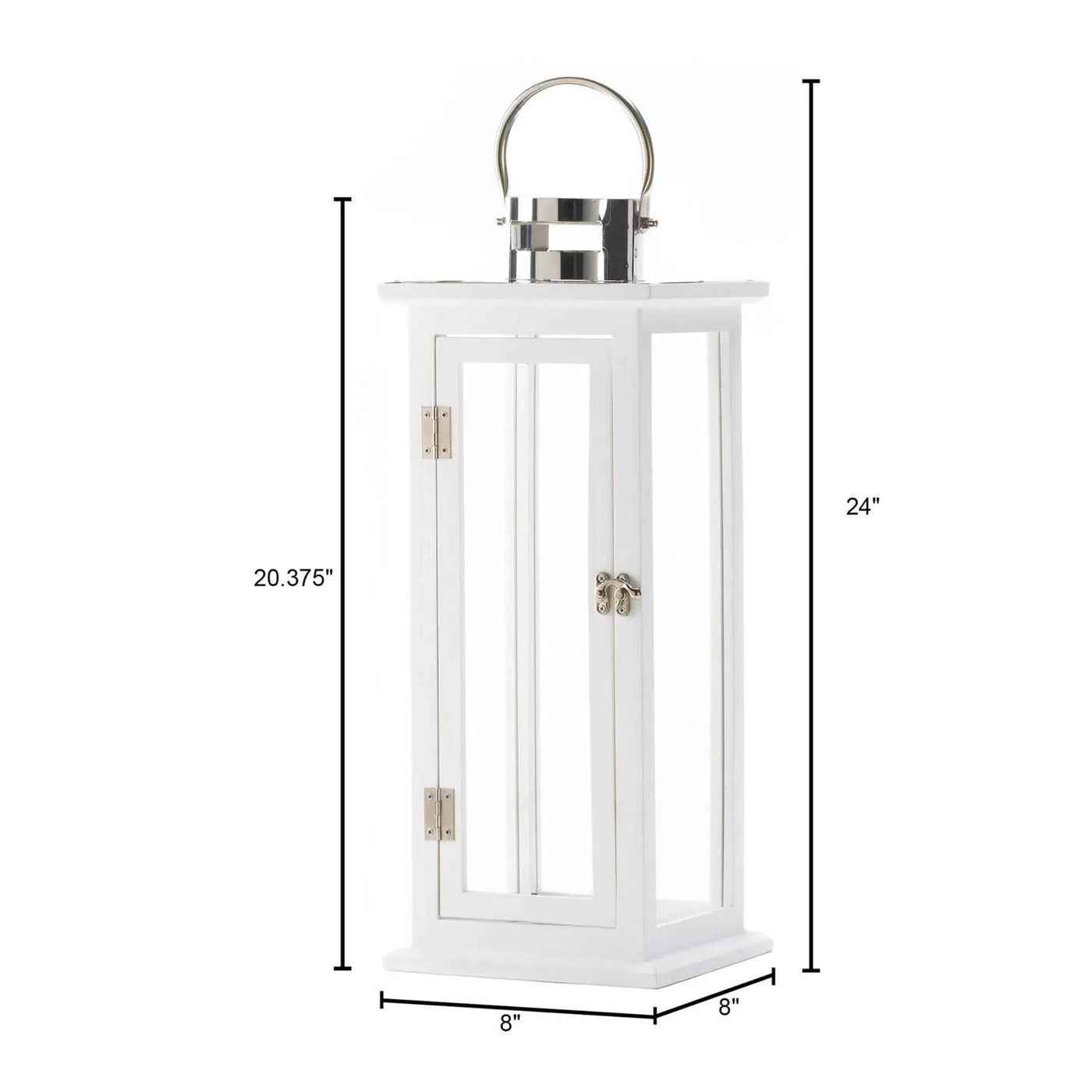 • standing tall, this slim wooden candle lantern is the perfect blend of classic design and modern style. The crisp white paint, silver hardware and stainless steel hanging loop turns candlelight into a stunning show.
